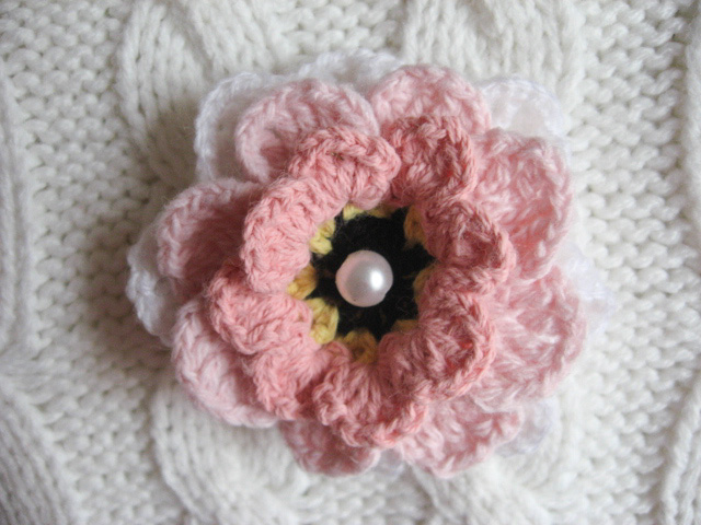 Brosa floricica tripla crosetata din fir de PNA