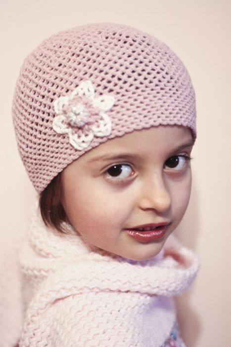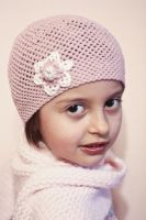 Bascuta crosetata din bumbac roz-mov cu floricica crosetata aplicata