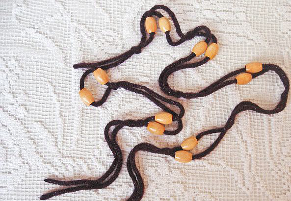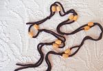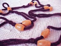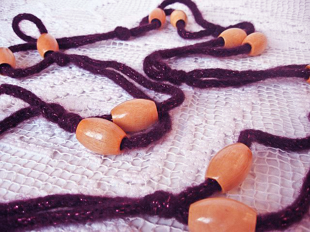 Cordon din fir gros de mohaiv mov cu bile de lemn