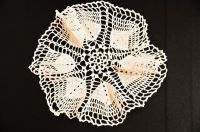 Dantela decorativa facuta cu croseta din fir de bumbac alb