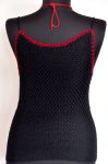 Maieu crosetat manual din fir de PNA negru tip plasa si rand de flori rosii crosetate si aplicate