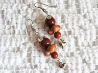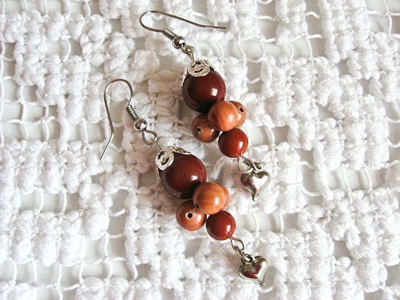 Cercei cu bobite marunte de jasp pictural si jasp rosu