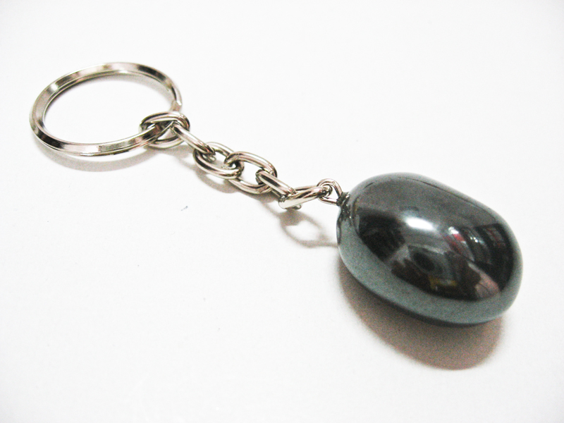 Breloc pentru chei din hematit cu lant argintiu