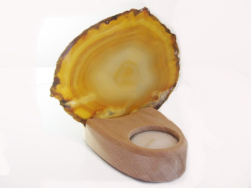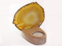 Suport pentru lumanare din lemn cu felie de agat galbui